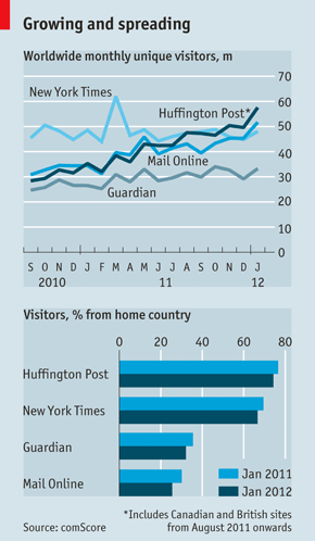 The BBC, CNN and Al-Jazeera, as well as the Financial Times and the Wall Street Journal, have long aimed at an international audience. But traditional media is finding it harder and harder to compete with online-only papers or those that are flexible to international market requirements. On the 17th of March 2012, The Economist reported that the New York Times lost its top spot in comScore’s ranking of the world’s biggest newspaper websites to Britain’s Daily Mail.